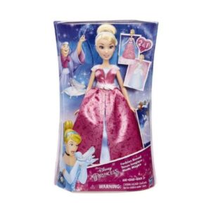 It's time for the royal ball, but what will Disney's Cinderella wear? With the Fashion Reveal Cinderella doll, your little princess can magically transform her pretty pink dress into her sparkling blue ball gown from her Fairy Godmother! Pull the string in the back of her dress, and then wrap the dress from front to back to choose which style the beautiful Cinderella doll will wear. Fasten the dress closed so that she's all set and ready to go to the ball! Your little dreamer will delight in making Cinderella's most magical movie moment come to life -- don't forget to have her back before midnight!