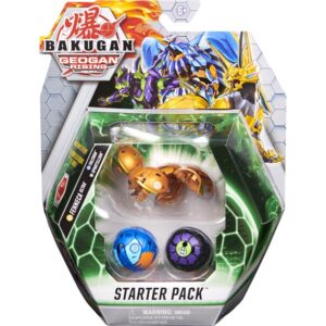 The Bakugan Starter Pack has everything you need to roll into action! Add two epic Geogan Rising Bakugan, one mighty Bakugan Ultra, six powerful BakuCores, collectible character cards and ability cards (all included) to your collection. Roll your Bakugan over the included BakuCores to pop open Baku-Action or choose your Bakugan Ultra to unleash an epic leap open transformation! Plus, use the included Gate-Card for even more ways to play and earn bonuses! With new and returning characters, Season 3 Bakugan all feature awesome detailing and Faction symbols, and now you can also collect Geogan (sold separately)! These mysterious Bakugan feature new shapes and unique transformations for even more battling power! Add on to your Starter Pack and collect over 200 Season 3 Bakugan! Build your collection, trade with friends and BATTLE! Roll into action with the Bakugan Geogan Rising Starter 3-Pack! BAKUGAN BRAWL!