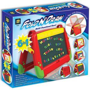 A spectacular 6 in 1- 4-Sided desktop easel. This unique and easily portable easel folds inside out to provide 4 sides of activities. It will entertain children with many features including a drawing board, magnetic board, blackboard, rub on board and wipe off board. Suitable for ages 3 years and up