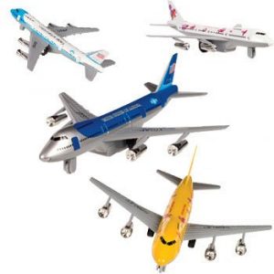 This large 7 inch die-cast jet liners have doors that open and close. Pull-back-and-go action. One jet liner included, colors and styles vary.