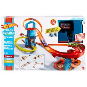 Power up Hot Wheels track builds with this awesome stackable booster kit! These versatile boosters connect to each other and to the two included intersections. These iconic Track Builder Unlimited stunt pieces are an incredible addition for building and rebuilding bigger and better stunt sets. Unleash their imagination with 5+ configurations! The Hot Wheels Track Builder Ultra Boost Motorized set is designed to be compatible with other sets (sold separately) for enhanced versatility and Hot Wheels action. Kids can choose their build, track performance and nail the win! Great gift idea for kids 6 years and older. Includes one Hot Wheels 1:64 scale vehicle.