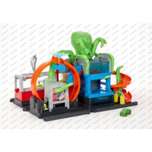 The Hot Wheels City Ultimate Octo Car Wash is packed with 4+ feet of awesome features and comes with a car that offers multiple surprises to make kids want to visit again and again! Straight out of the box, the Color Reveal vehicle is covered in a green coating to kick off the adventures. Fill the first water tank with water, drop the car in, and swirl it around for the initial reveal: a cool Hot Wheels vehicle with a totally sweet deco! Run the car through the set -- that includes a loop -- letting excess water drain off while admiring the car's awesome details. Before the final wash, fill the octopus's head with cold water and spray the car through the tentacles to reveal another entirely different deco! Use warm water to change it back. Run the car through the car wash and repeat over and over again to see it switch between the last two color changes! Kids will love the action and transformation. Parents will love the ability to fold it in half for compact storage. Colors and decorations may vary.