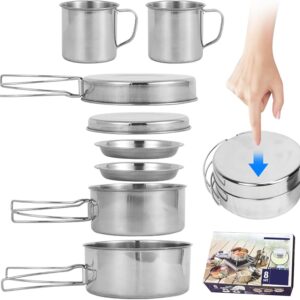 Camping Cookware Mess Kit, Portable Camping Cooking Set for Backpacking, Outdoor Hiking and Picnic Pot Pan(Green)