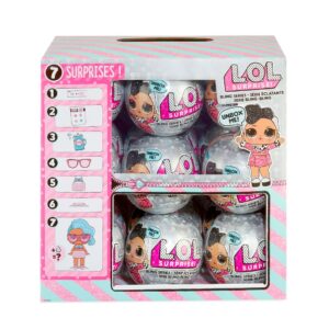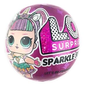Unbox 7 sparkly surprises with L.O.L. Surprise! Sparkle Series. Twelve fan favorite characters got a sparkly makeover, and you can find them with stunning glitter finishes and hairstyles! Look for Punk Boi, Boss Queen and other fave characters in all-new outfits! Feed or bathe doll to discover water surprises! L.O.L. Surprise! Sparkle Series come packaged in a display case ball with a clear front and doll stand that can be hung up as a fabulous decoration for your room.
