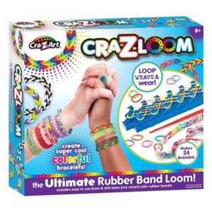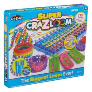 Cra-Z-loom Super Cra-Z-Loom With New Neon Bands, includes double wide loom, 6 prong loom, 2 hooks, 2-200 latex-free rubber bands, buttons & project guide
