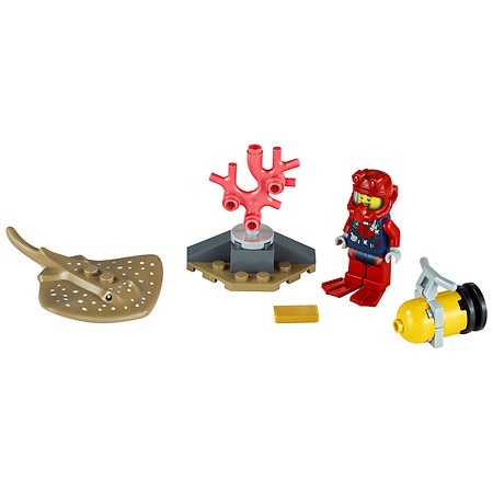 Kids can enjoy imaginative underwater exploration with this fun set, featuring a diver minifigure with a deep-sea scooter, plus a coral reef setting and a stingray figure.