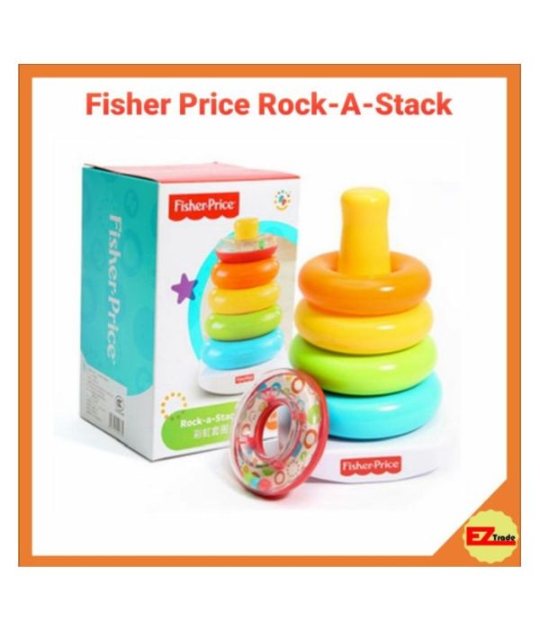 6 m+. develops curiosity problem solving. Stack, rock & roll! This Fisher-Price classic has been rockin’ kid’s world since the ’60s. It’s fun, it’s colorful & it’s here to stay! Sort & stack up the fun – from biggest to smallest! Keep the fun growing! Make owl eyes with them. Wear them as bracelets. Balance then on your head. Most loved and trusted by moms (based on a 2015 survey of 1,545 moms in the US, Russia and China). Where development comes into play. Curiosity: As baby stacks all 5 rings bats the wobbly rocker, their curiosity grows! Problem Solving: Taking rings on & off the post helps promote baby’s big thinking skills! Are you ready to rock.
