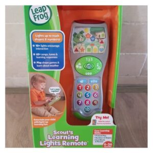 Keep little ones entertained in a big way with a pretend-play remote that introduces numbers, shapes, first words and more! With more than 65 songs, tunes and learning responses from an irresistible light-up screen, the LeapFrog Learning Lights Remote helps children ages 6 to 36 months tune into early learning concepts as they imitate Mom and Dad. With the LeapFrog Learning Lights Remote, little ones can press up, down, left or right to hear counting and numbers songs, play a shapes game with the delightful puppy pal Scout, or count along with him. They can press the channel buttons to hear how Scout has fun in all kinds of weather or to help him count shapes in his garden. The number buttons prompt a counting activity, which encourages little ones to count bright-colored shapes that light up on the screen. Lovable Scout is always at their fingertips to entertain, encourage and help children explore. The Light-Up Remote comes with 3 AAA batteries, which should be replaced for home use.