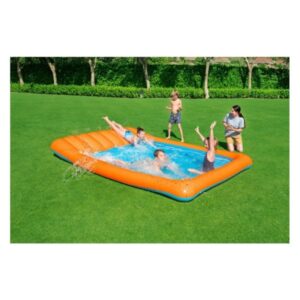 Perfect for kids aged 2 years and over this inflatable has a mega speed ramp for sliding into the splash pool. With a water-filled landing it will cushion their landing. A built-in sprinkler keeps the slide slick and provides extra fun for your children. When they're finished you can release pool water with an easy-to-use drain valve.