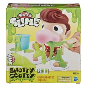 Meet Snotty Scotty - Mom always said don't pick your nose, but she never said anything about Scottish Scotland's nose. This fun toy for kids ages 3 and up is sure to be a top pick (clapping game). It doesn't happen - put some Play-Doh Slime in the Play-Doh Snotty Scotty Playset, then press the top of her head to make the Play-Doh slime drip from her nose. Squeeze Your Nose - Your nose is soft, fluffy, and irresistible to squeeze. Pinch his nose to make Play-Doh slime pop out of this silly slime toy.