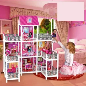 Little Girl Villa Doll House High Quality Plastic Material 3 Levels of open Space 3 Dolls Included 15 Pieces 0f Furniture & Accessories Luxury Beverly Hills Adorable Doll House Great Gift Ocean Recommended Age 3+Years