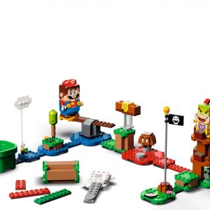 Kids can team up with their favorite character in the real world with this LEGO® Super Mario" Adventures with Mario Starter Course (71360). The set features a LEGO Mario" figure that gives instant expressive responses via the LCD screens and speaker. Players earn virtual coins moving LEGO Mario from the Start Pipe to the Goal Pole via spinning and cloud platforms, the? Block, and super battles with the Goomba and Bowser Jr. toy figures. Rearrange the bricks to create new levels to master. Enhanced playA free LEGO Super Mario app is available for enhanced play with this gift toy for kids. It has zoom and rotate viewing tools to make building easier, suggests other creative ways to build and play, and is a safe forum to share ideas with friends. Mario unlimited! Great for solo play or group competitions, LEGO Super Mario sets bring a family-favorite character into the real world. This Starter Course and the Expansion Sets offer unlimited challenges and nurture problem-solving skills.