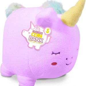 This plush bank is made for your little one's early introduction to savings. Made from durable polyester, this unicorn coin bank easily doubles as a cute plush collection, making it super easy and fun for your child to start saving money. Encourage your little chunks to drop every penny in their own bank. To do better, they can carry around their favorite bench-turned playtime companion, and feel all grown up and rich.